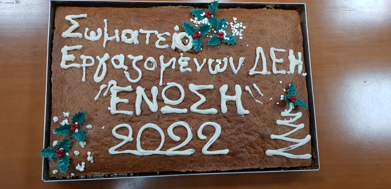 Την ετήσια κοπή πίτας πραγματοποίησε το Σωματείο Εργαζομένων ΔΕΗ Η «ΕΝΩΣΗ», ανταλλάσοντας ευχές για Καλή Χρονιά, για οικογενειακή και προσωπική υγεία όλων των εργαζομένων της επιχείρησης και με την ευχή για μηδενικά ατυχήματα στο χώρο εργασίας.